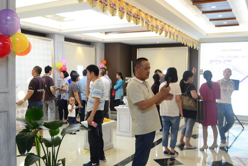 直供專車抵達奇力總部后,業(yè)主們就迫不及待得趕往公司展廳參觀。富麗堂皇的美式風(fēng)尚展廳,高貴奢華、精致典雅。一進展廳,業(yè)主們的所有關(guān)注點便投射到產(chǎn)品上。他們紛紛掏出手機,親手記錄下奇力的精美產(chǎn)品與展廳。