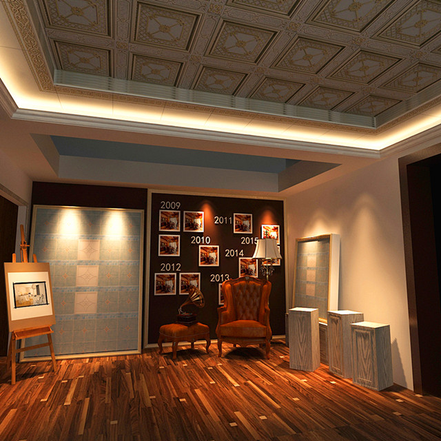 二觀內涵:隱約看見的展館內的時間照片墻2009.2011.2012……2015,從1999奇力創建伊始,帶領諸君感受奇力的15年沉淀的文化氣息。步入展館優雅靜謐的感覺撲面而來,柔和的燈光,咖啡色的美式布置,充分體現了奇力吊頂崇尚的美式風尚。