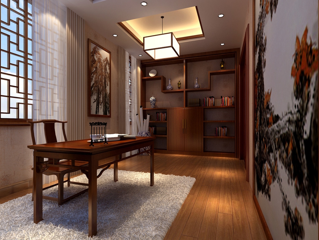 中式風(fēng)格的書(shū)房,符合典雅、樸實(shí)、具有傳統(tǒng)意義上的“書(shū)齋”的韻味。“斯是陋室,唯吾獨(dú)馨”就是中式風(fēng)格書(shū)房的完美演繹。紅色仿木紋樣式的吊頂,置入中式家具,加上中式書(shū)柜、茶幾及屏風(fēng),配以中國(guó)字畫(huà)和古玩等點(diǎn)綴其間,就構(gòu)成一幅中式風(fēng)格的書(shū)房藍(lán)圖。進(jìn)入這個(gè)書(shū)房學(xué)習(xí),你是不是也會(huì)有種穿越的感覺(jué)。