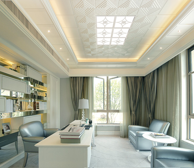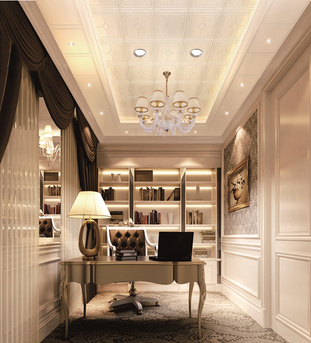 歐式風(fēng)格的書(shū)房,在家具上的選擇一些具有“歐味”的書(shū)柜和工作臺(tái),再配以西洋油畫(huà)、水彩畫(huà)和雕塑等也能增強(qiáng)歐陸風(fēng)情,如女體像柱、繪畫(huà)雕塑、裝飾假面以及圓形或橢圓形雕飾等圖案。在這樣的書(shū)房辦公,會(huì)不會(huì)事半功倍呢?