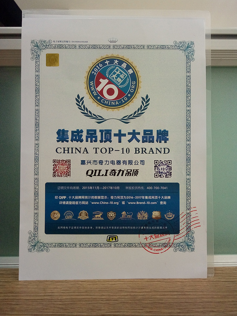 十大品牌的數(shù)據(jù)是亞洲品牌數(shù)據(jù)研究院通過國(guó)家相關(guān)部門、品牌評(píng)價(jià)機(jī)構(gòu)、統(tǒng)計(jì)資料、市場(chǎng)調(diào)查數(shù)據(jù)、媒體互聯(lián)網(wǎng)、網(wǎng)友點(diǎn)擊投票,是大數(shù)據(jù)、云計(jì)算、數(shù)據(jù)統(tǒng)計(jì)真實(shí)客觀呈現(xiàn)的結(jié)果。由買購(gòu)網(wǎng)聯(lián)合品牌權(quán)威機(jī)構(gòu)舉辦的十大品牌評(píng)選活動(dòng)于近日落下帷幕,行業(yè)十大品牌由此揭曉。奇力吊頂憑借自身的優(yōu)質(zhì)服務(wù)、獨(dú)特風(fēng)格、產(chǎn)品品質(zhì)、用戶口碑及品牌影響力等,獲得消費(fèi)者的認(rèn)可,榮獲“2016年度集成吊頂十大品牌稱號(hào)”。