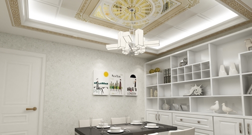 客廳要足夠的敞亮,奇力吊頂打造的客廳,頂部大板與小板的搭配,凹出優雅造型,并不只有豪華大氣,更多的是愜意的浪漫。通過精益求精的頂部細節處理,帶給家人不盡的舒服愜